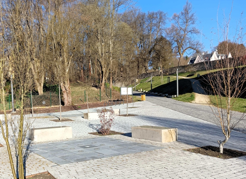 Posledním vodním prvkem je programovatelná soustava zemních trysek u přístupové cesty do více než tříhektarového parku Historie nad radnicí. Fontánový systém byl součástí revitalizace parku, dokončené v roce 2022.