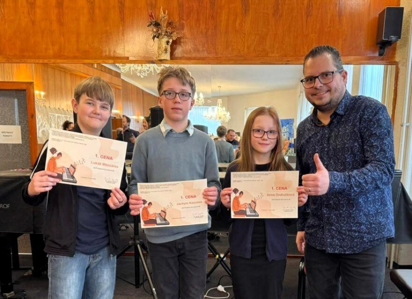 V pátek, 13. 2. 2026, se v sokolovské zuš konalo okresní kolo soutěže ve hře na elektronické klávesové nástroje. Naši žáci, Anna Ondrušková, Jáchym Kozubek a Lukáš Mészáros ze třídy p. uč. Patrika Lavrinčíka, získali každý 1. cenu a postupují do krajského kola. Gratulujeme. (P. Lavrinčík)