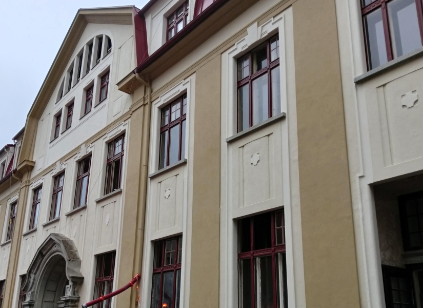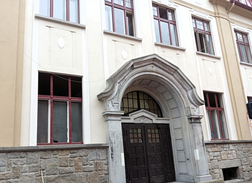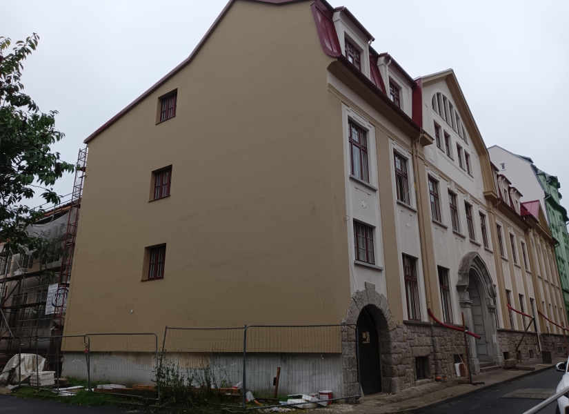 Rekonstrukce bývalého Ašského kulturního střediska v Karlově ulici běží už od června 2023, tedy více než dva roky. Nyní stavbaři dokončují opravu fasády, z Karlovy ulice je již demontováno lešení, takže byla možnost si budovu z této strany vyfotit.