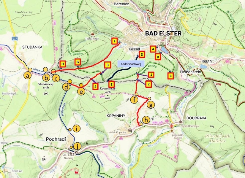 Studánecká, Podhradská a Kopaninská cesta. To jsou tři krátké lesní cesty, historicky navazující na pěšiny v okolí saských lázní Bad Elster, které chce německé město, spolu s městy a obcemi na Ašsku, ještě v tomto roce obnovit. Nepůjde přitom o nijak drahou záležitost. Předpokládá se pouze vytýčení cest turistickými značkami a rozcestníky. Náklady celého přeshraničního projektu jsou odhadovány do jednoho sta tisíc korun.