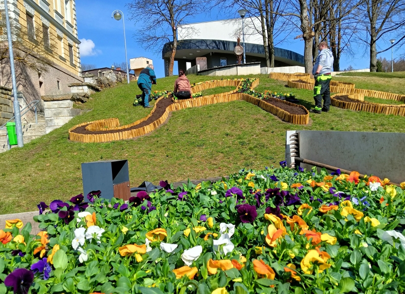 Tři tisíce macešek různých barev. To je první porce jarních květin, které v těchto dnech vysazují pracovníci Ašských služeb ve městě. Jedním z míst, kde se macešky objevily, je obnovený květinový záhon ve stráni pod radnicí ve tvaru názvu našeho města.