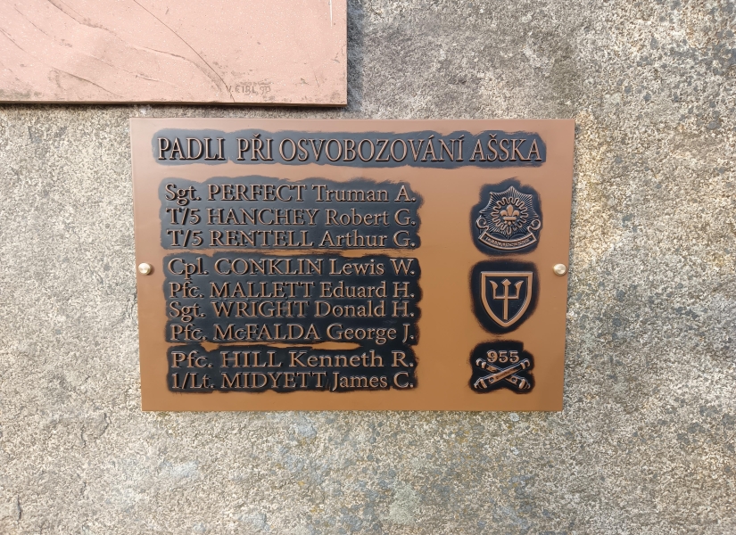 Radnice v minulosti řešila, že na pamětní desce na pomníku Američanům, která je ve městě od roku 1990, byla uvedena i jména vojáků, kteří válku přežili. Za pomoci odborníků byla nyní historie „narovnána“ a nová deska, vyrobená zdejší slévárnou Heunisch, již obsahuje přesné údaje.