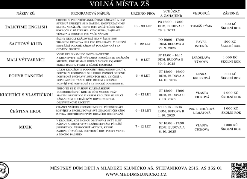 Stále máme volná místa v některých kroužcích, proto je možné se nadále přihlašovat.