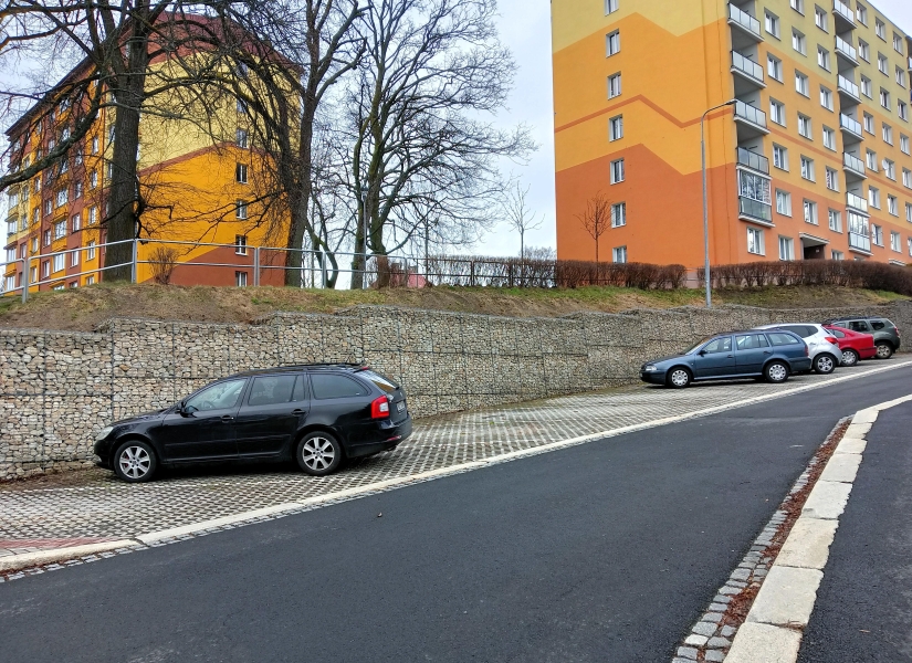 Oprava gabionové zdi v Příbramské ulici pro bezpečnější parkování