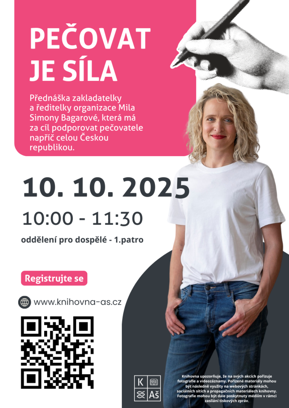 Přednáška zakladatelky a ředitelky organizace Mila Simony Bagarové, která má za cíl podporovat pečovatele napříč celou Českou republikou.