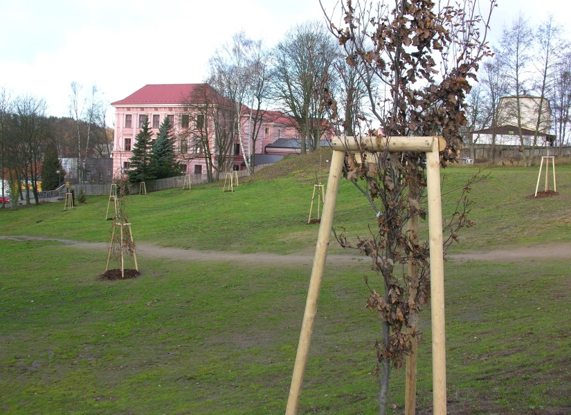 Na pozemcích bývalé školní zahrady ZŠ Kamenná mezi Dukelskou ulicí a OD Billa byl založen nový parčík. V zimě tento svažitý terén využívají děti k bobování.