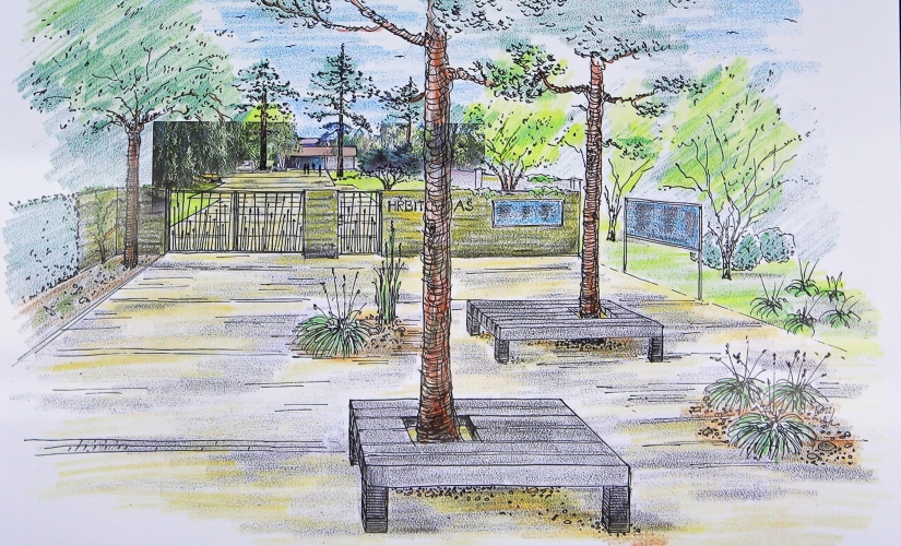 Přiložená kresba je ze studie a řeší návrh nového vstupu do hřbitova.