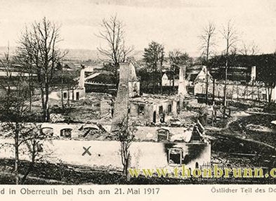 Čtenářsky asi nejzajímavější je oddíl, věnovaný požáru obce v roce 1917, kdy úmyslně založený oheň obec téměř vymazal z mapy. Autor k této události mj. píše: „Dne 21. května 1917, ve třetím roce světové války, zachvátil Oberreuth (pozn.: tehdejší název obce) nejhorší požár, který se na Ašsku vyskytl v průběhu 20. století. Za oběť mu padlo 29 usedlostí, pět zbylých se díky zákroku hasičů podařilo zachránit.“