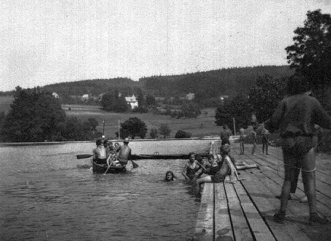 Hráz koupaliště v Krásné teče a musí být vyspárována, s úplným dokončením koupaliště se počítá na začátku sezóny v roce 1959 (pozn.: otevření koupaliště se slibovalo už v kronice 1957).