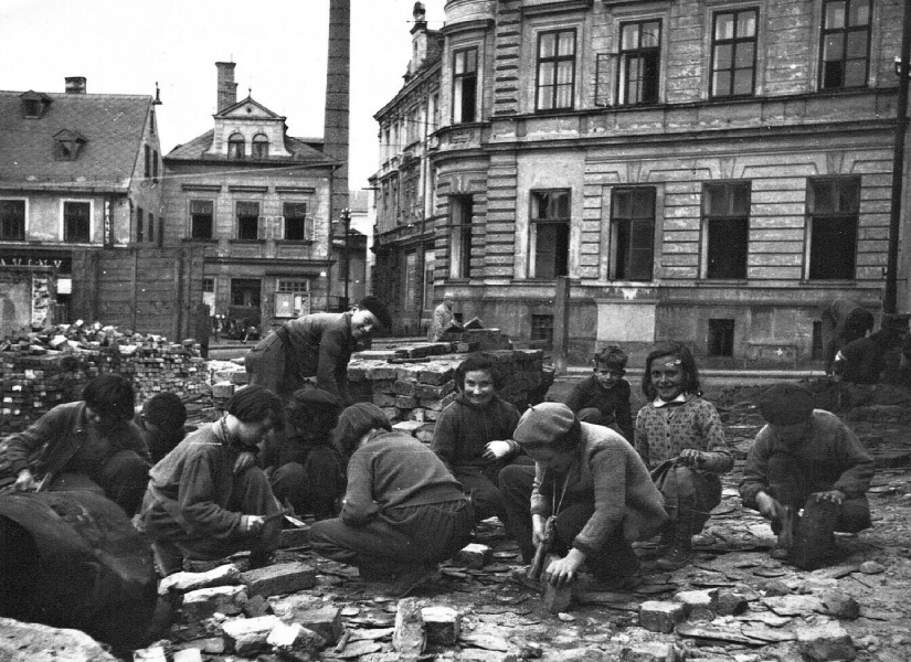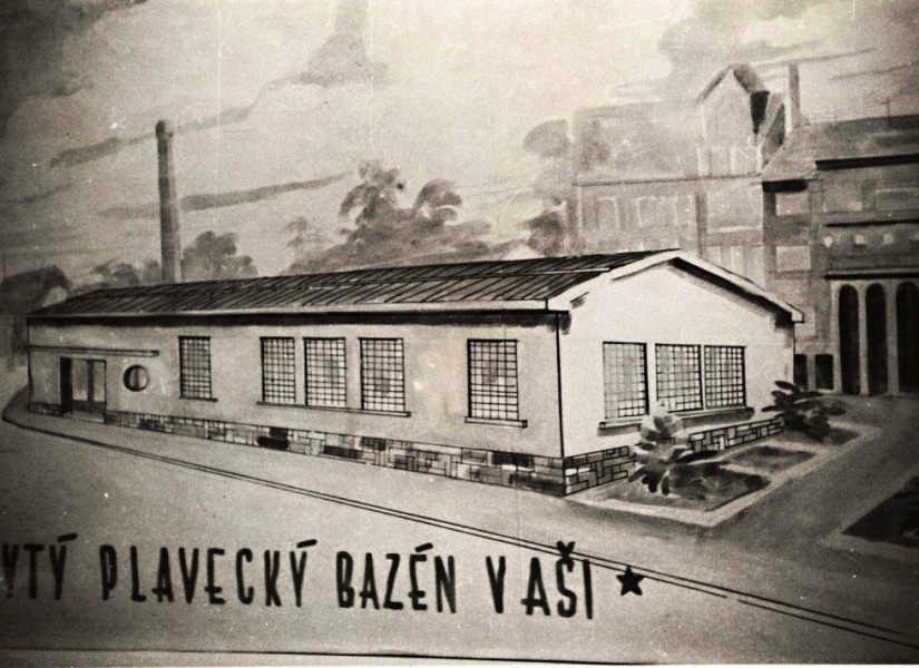 V červnu byla zahájena výstavba krytého bazénu, bude mít rozměry 25 x 15 metrů a hloubku 2,5 metru Během června už začaly přípravné práce vyklízením prostranství před kinem. Na přípravě se podílejí i děti čištěním cihel z bouraček (pozn.: jak to celé s bazénem dopadlo, se dočteme v kronice roku 1959).