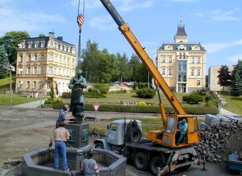 Pokračující rekonstrukce Hlavní ulice si vyžádala demontáž kašny se sochou J. W. Goetha.