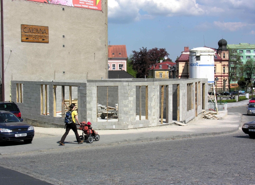 Na rohu ulic Rybniční a Kamenné v centru Aše (v místě, kde ještě nedávno stál oblíbený stánek s občerstvením) vyrůstá nový polyfunkční dům. Budován je ze soukromých prostředků.