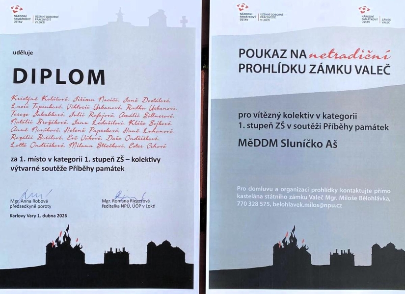 S velkou radostí, hrdostí i dojetím jsme si 1. dubna 2026 v Karlových Varech převzali krásné 1. místo v soutěži Příběhy památek, kterou vyhlásil Národní památkový ústav.