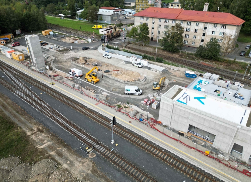 Několika snímky připomínám probíhající stavbu nového vlakového nádraží v Aši. Tentokrát se nám podařilo pořídit fotografie pomocí „městského“ dronu, za což děkuji Petru Vodrážkovi. A protože byl fotit v této lokalitě, přidávám ještě dvě fotografie vznikající průmyslové zóny u obchvatu města.