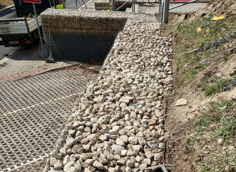 Tato opatření by měla zabránit vypadávání kameniva z gabionových košů v místech parkování vozidel. Zhotovitelem opravy je společnost Neutra project, s.r.o.