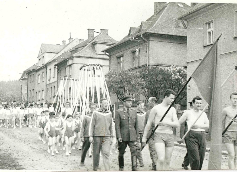 Na fotografiích je končící elektrárna v Mokřinách, ašské ulice v roce 1960, dům pionýrů v Kmochově ulici, požár kostela a také spartakiáda.