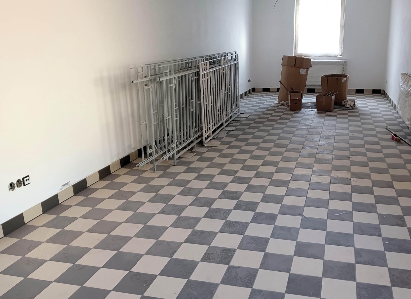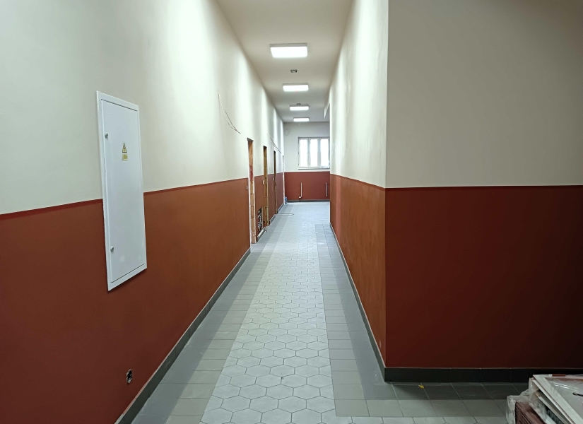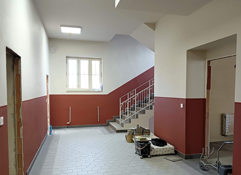 Zhruba po dvou a půl měsících jsem navštívil stavbu komunitního centra v Karlově ulici Aši, které vzniká celkovou rekonstrukcí bývalého kulturního střediska. Rekonstrukční práce se blíží do závěru a na interiéru i exteriéru budovy je to znát. Některé prostory jsou již prakticky hotové, s omítkami, výmalbou a položenými krytinami, jinde se finišuje. Například velký sál je ve fázi před pokládkou podlahy z parket, která začne už zítra.