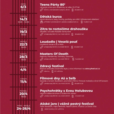Programová nabídka KC LaRitma na měsíce březen a duben 2026