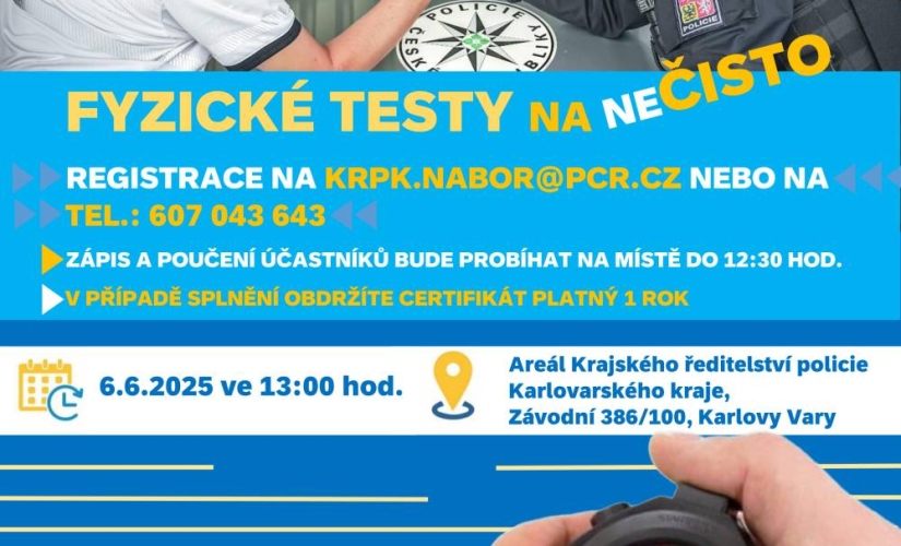 Místo konání: areál Krajského ředitelství Policie Karlovarského kraje. V případě splnění obdržíte certifikát platný jeden rok.