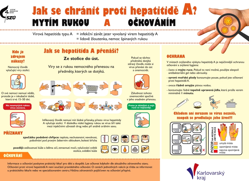 Hepatitida typu A je onemocnění jater, které často začíná jako chřipka nebo žaludeční potíže. Typické jsou únava, zvýšená teplota, bolesti hlavy a svalů, nechutenství či nevolnost. U dospělých se později může objevit ztmavnutí moči, zesvětlení stolice a žluté zabarvení kůže či očí. Léčba spočívá především v režimových opatřeních, přičemž hospitalizace na infekčním oddělení a délka pobytu pak závisí na zdravotním stavu nemocného. Samotná nemoc trvá zpravidla dva až čtyři týdny.
