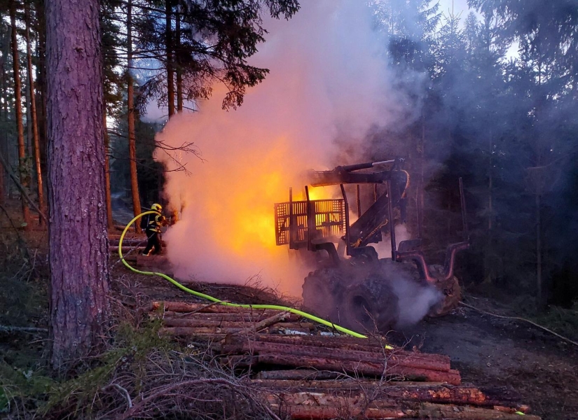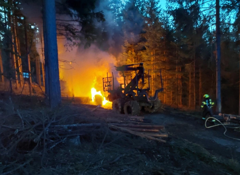 V lese v Dolních Pasekách hořel vyvážecí stroj, škoda je dva miliony korun